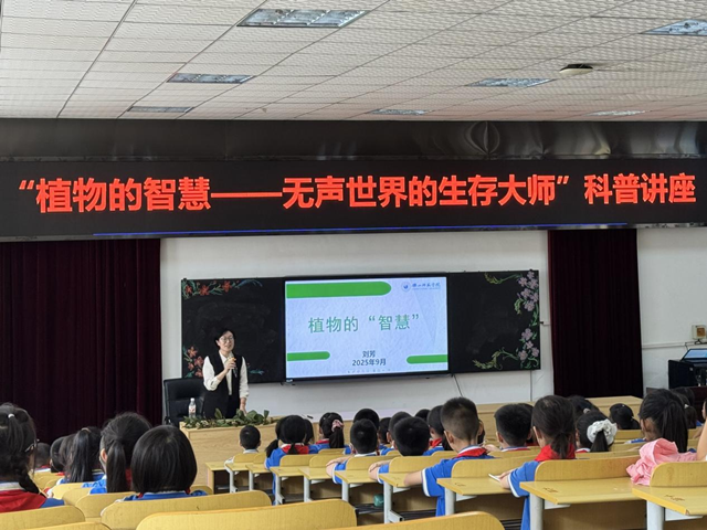 9月23日,生命科学学院院长刘芳走进乐山市徐家扁小学,开展以“植物的智慧——无声世界的生存大师”为主题的科普讲座。她通过丰富生动的案例与互动问答,引导学生深入理解植物种子传播的多样策略及其特殊形态背后的生态适应意义,在轻松氛围中启迪科学思维。